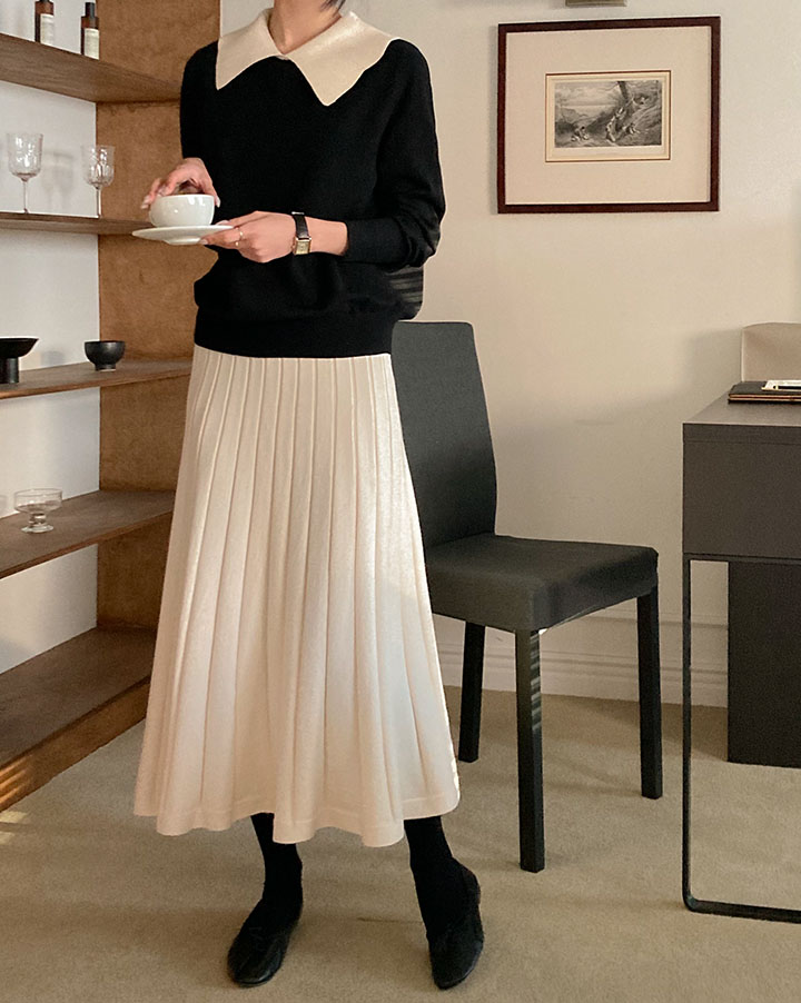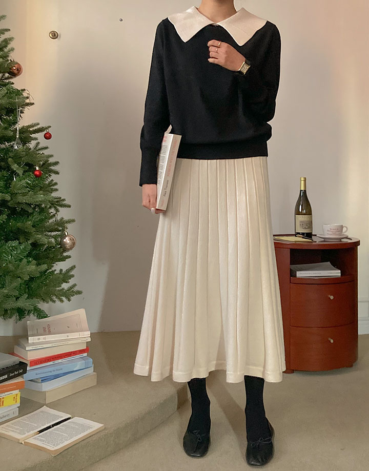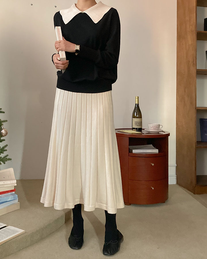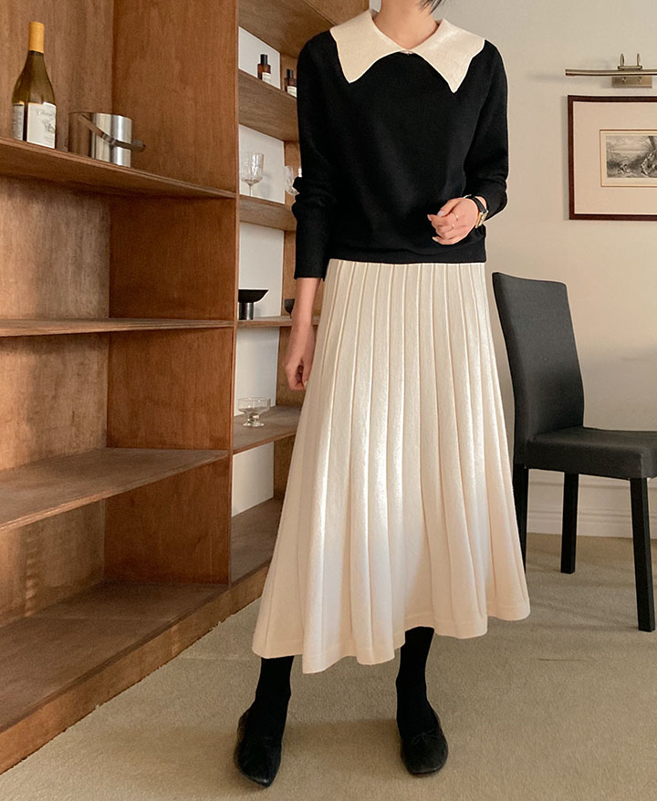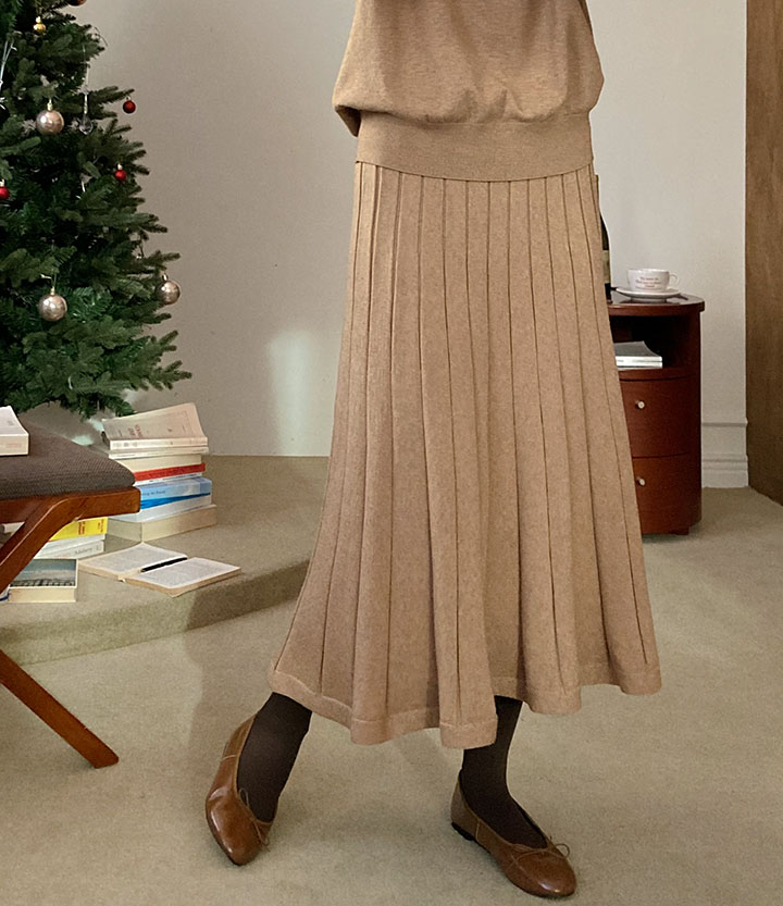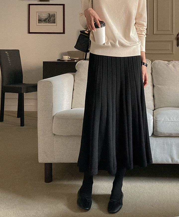 Chic Pleats Wrinkles for soft touch! Daily and feminine knit skirt