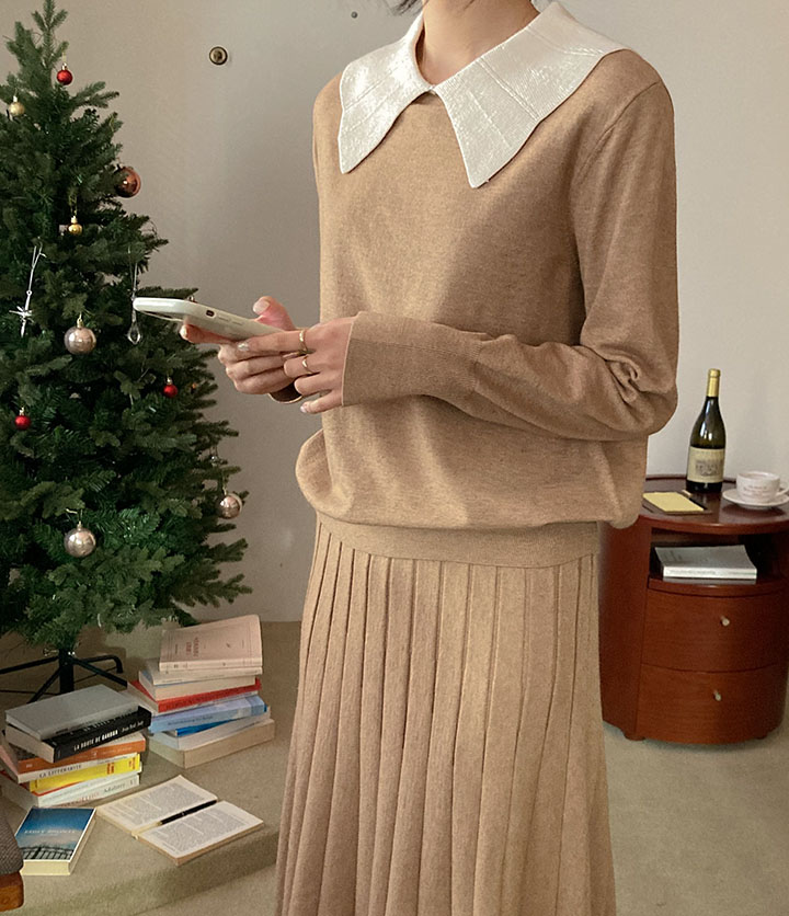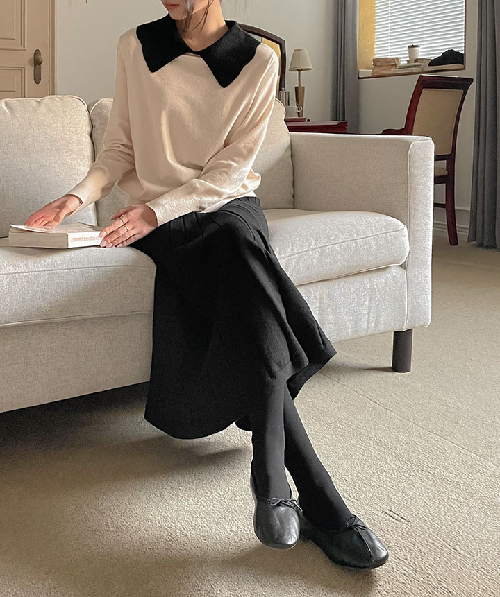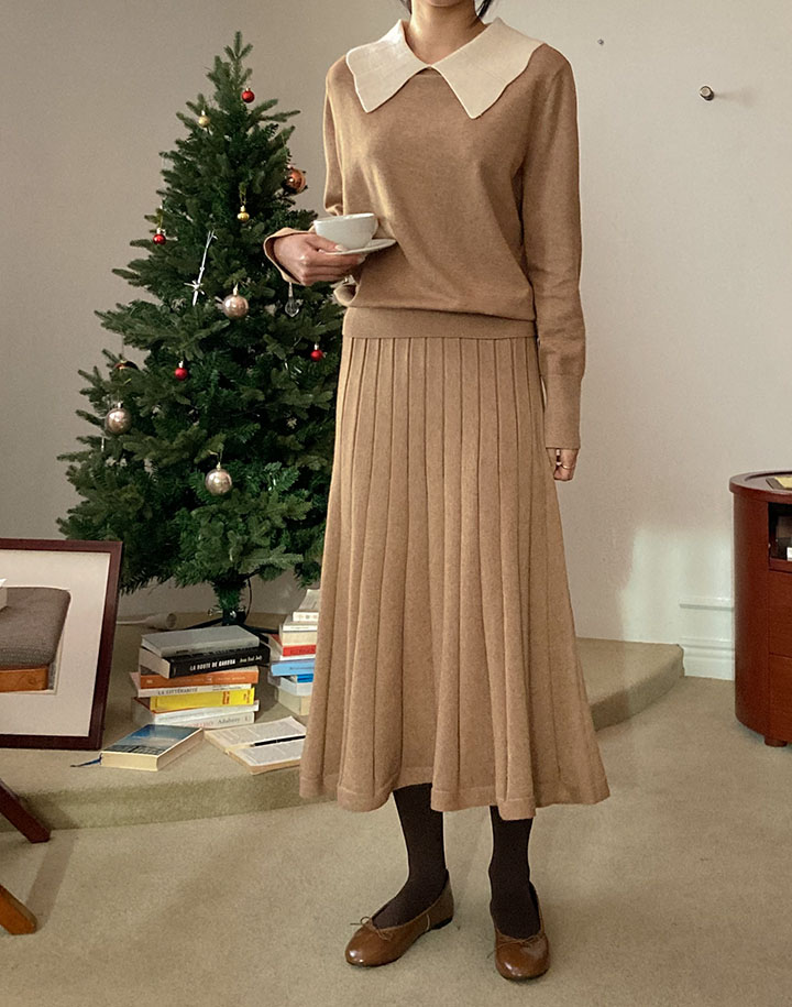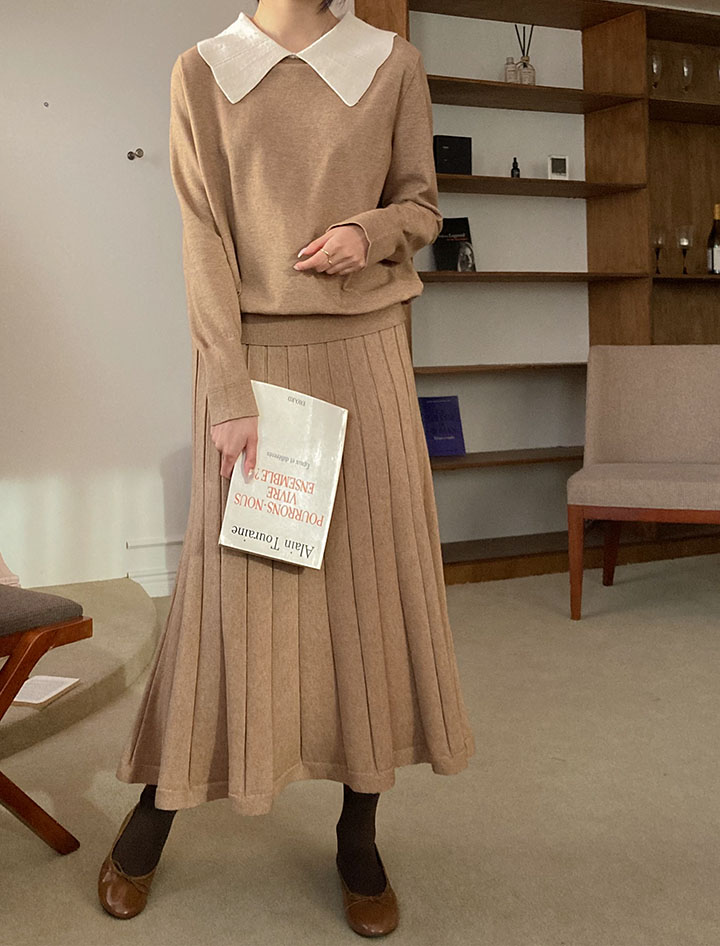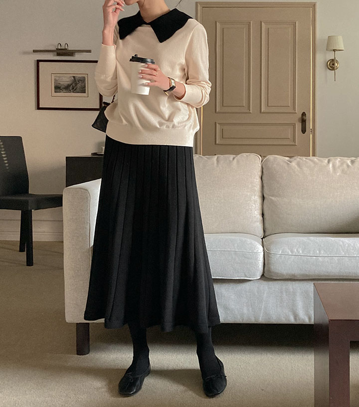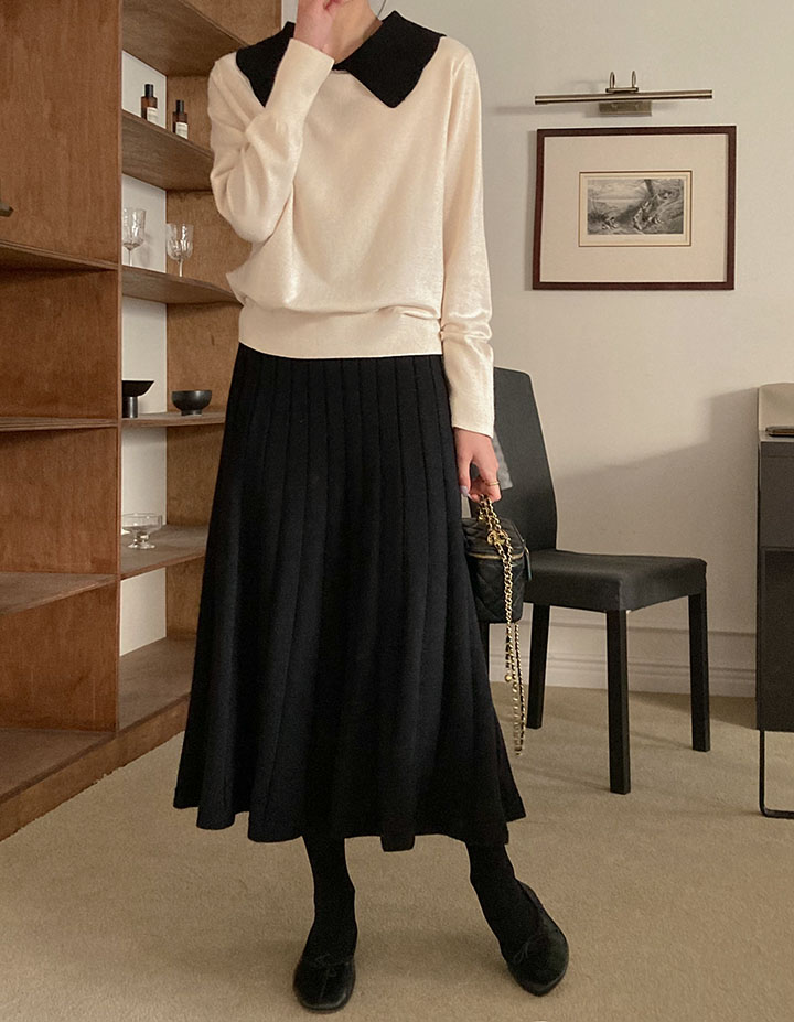 Chic Pleats Wrinkles for soft touch! Daily and feminine knit skirt