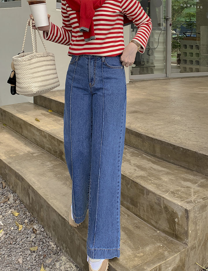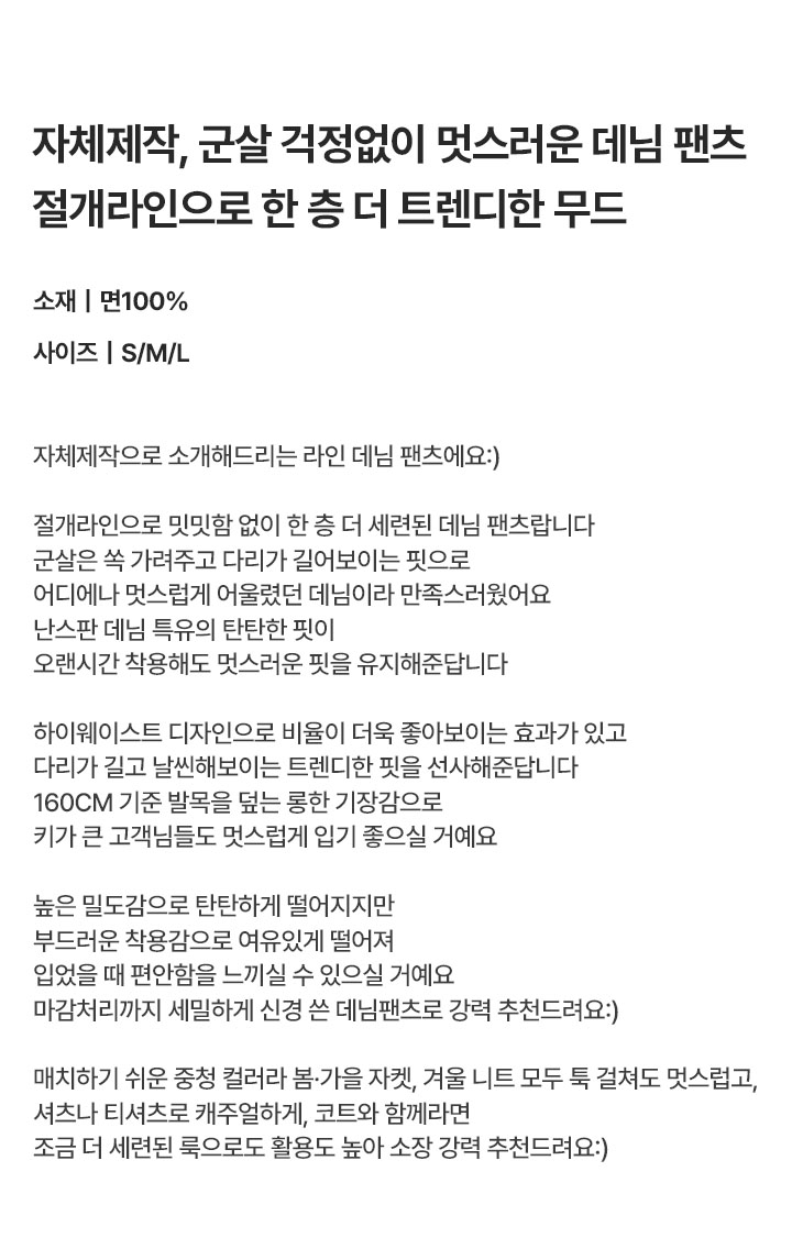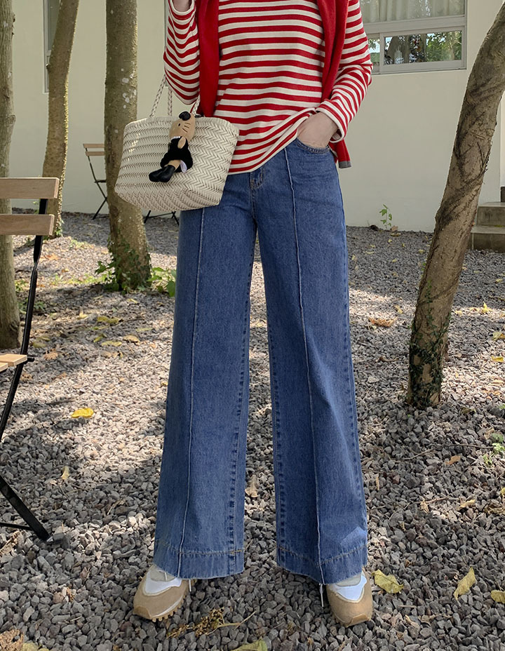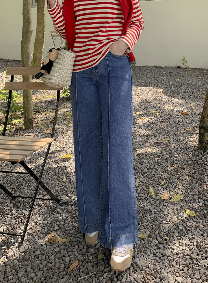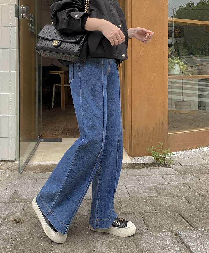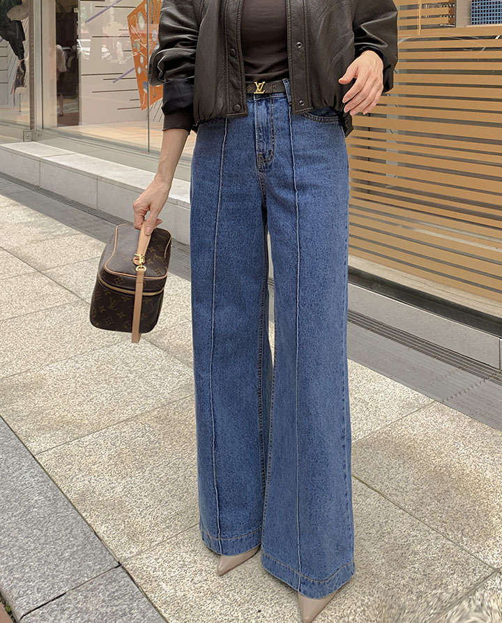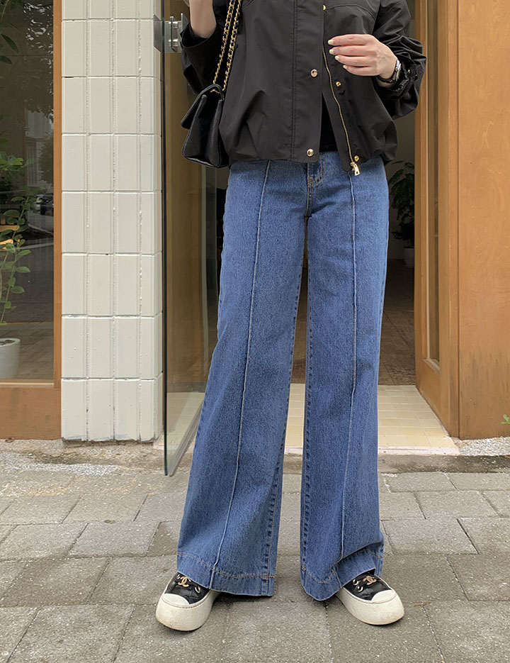 Self-made, stylish denim pants that you can wear without worrying about flab. The cut line creates a trendier mood.