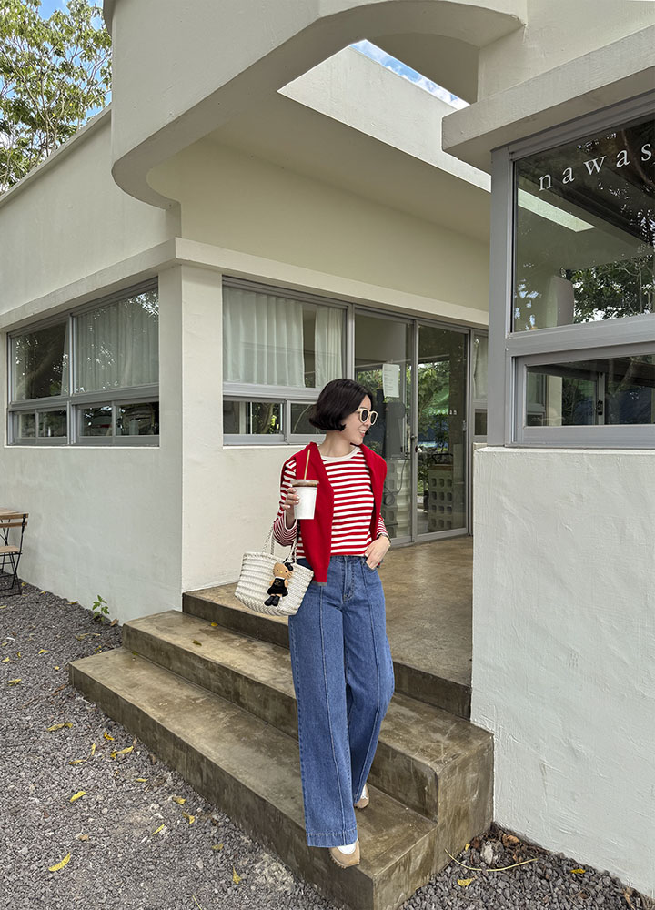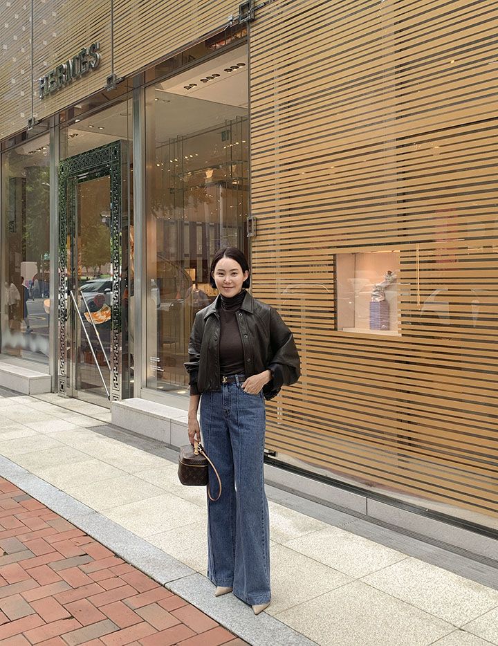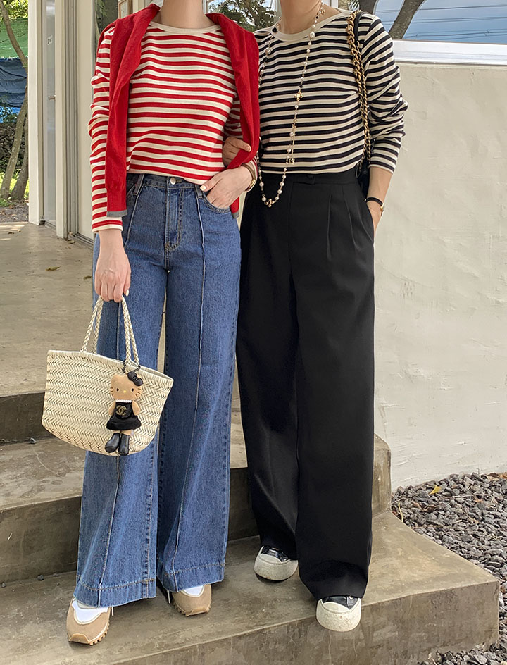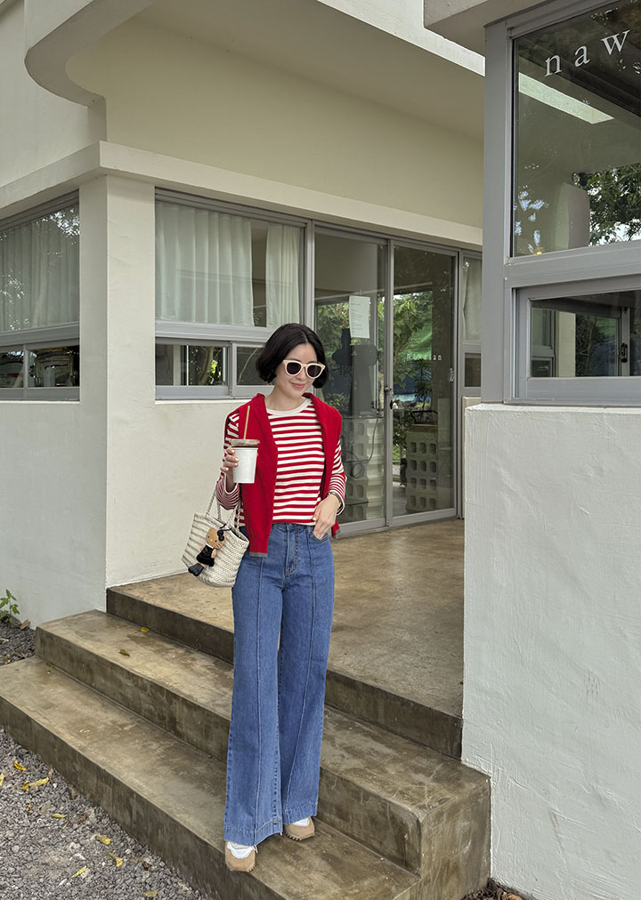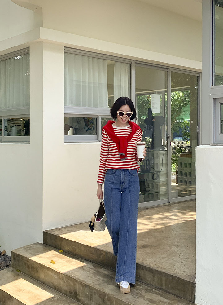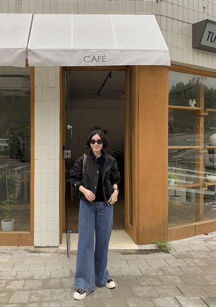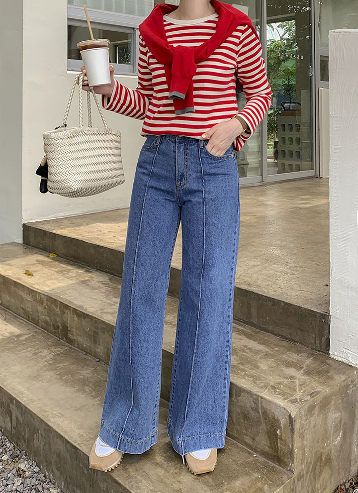 Self-made, stylish denim pants that you can wear without worrying about flab. The cut line creates a trendier mood.