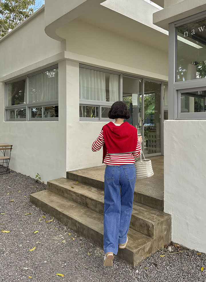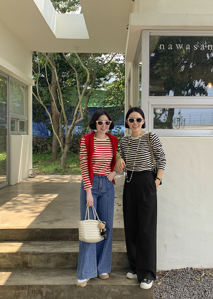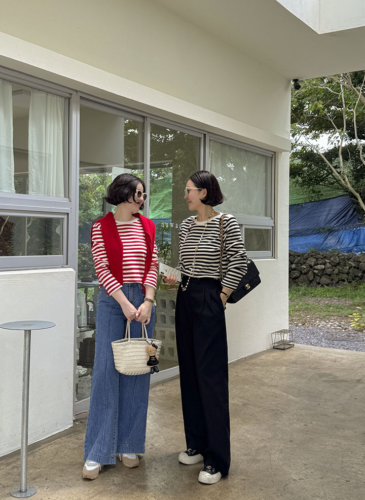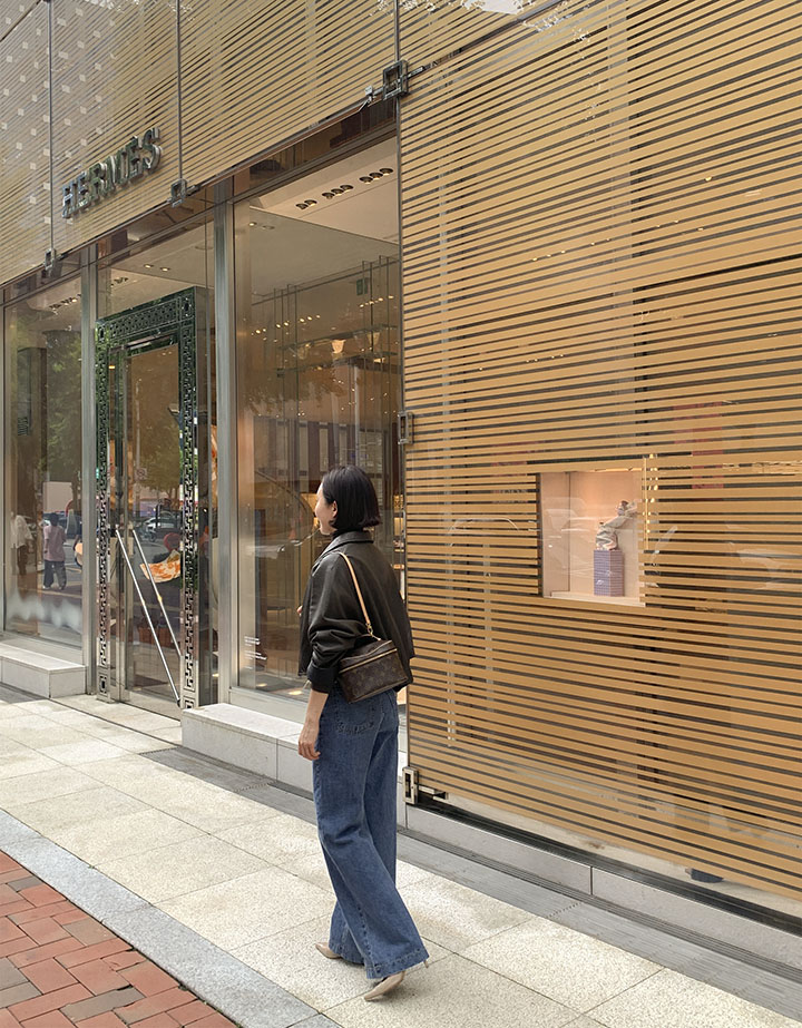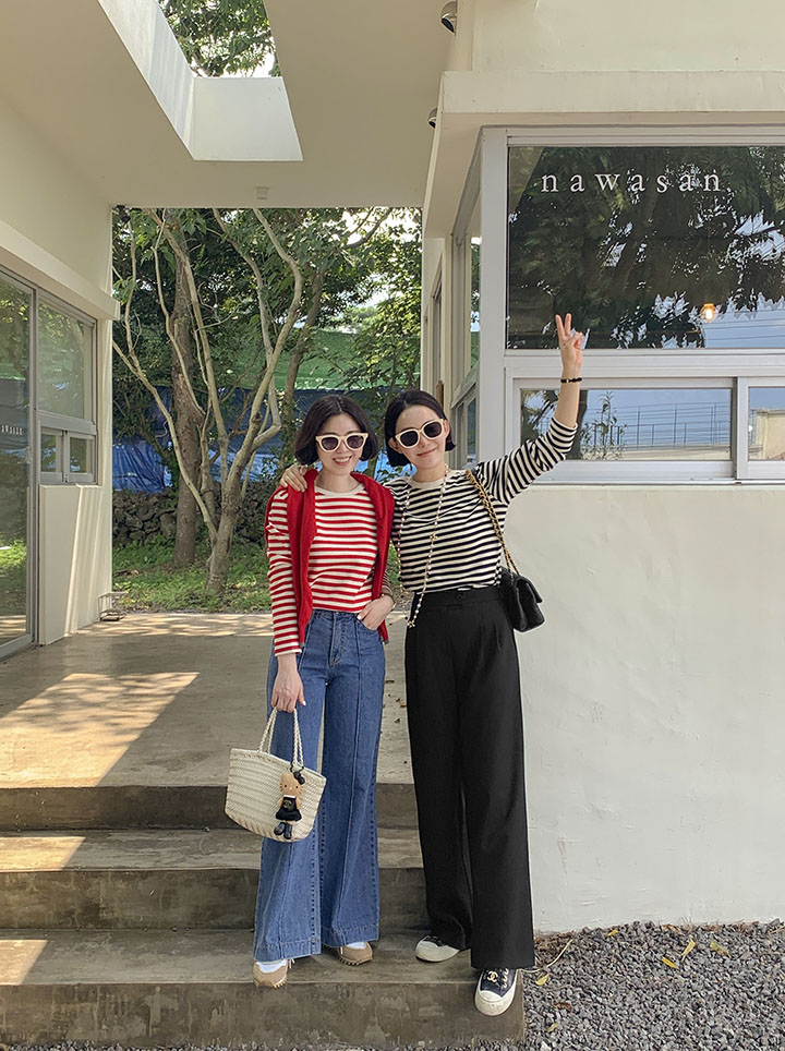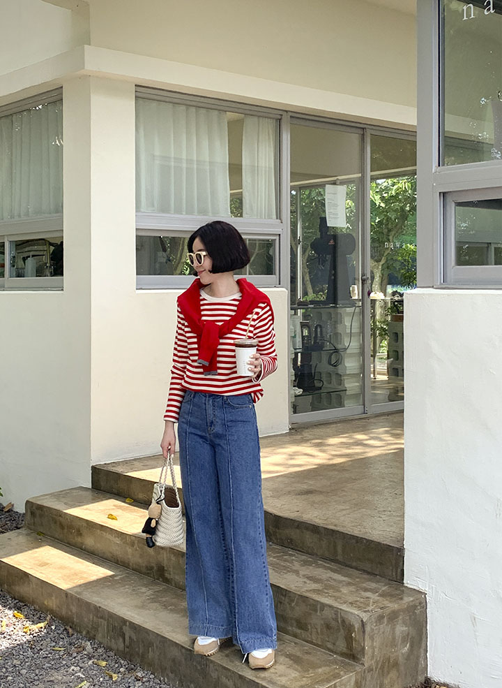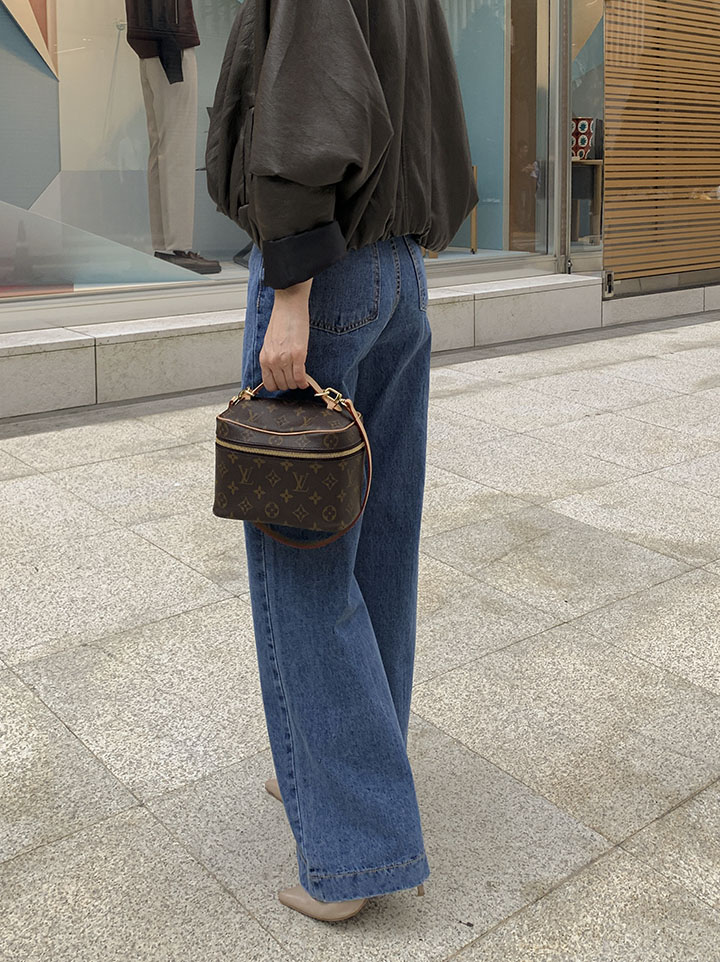 Self-made, stylish denim pants that you can wear without worrying about flab. The cut line creates a trendier mood.