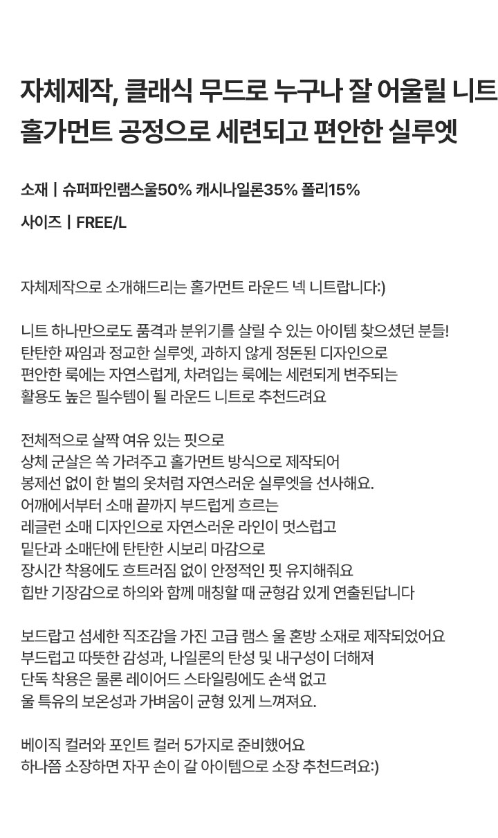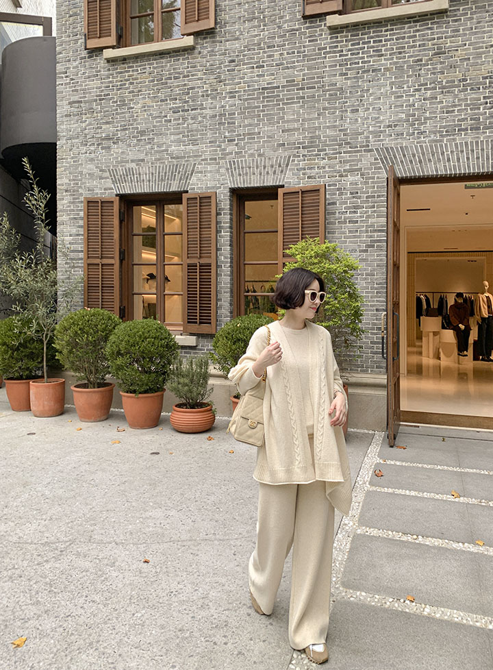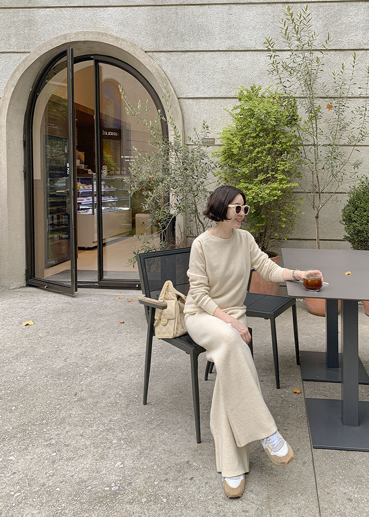 A sophisticated and comfortable silhouette created with a knitted whole garment process that suits everyone with its own classic mood.