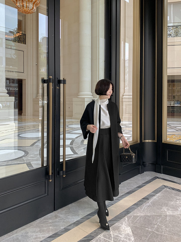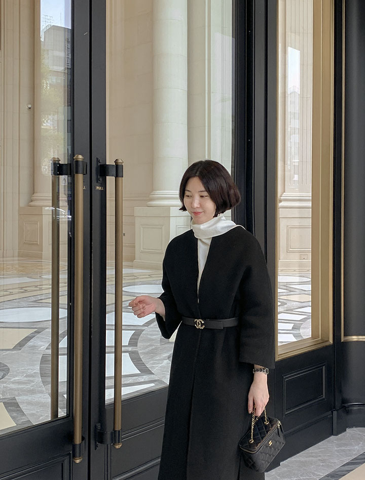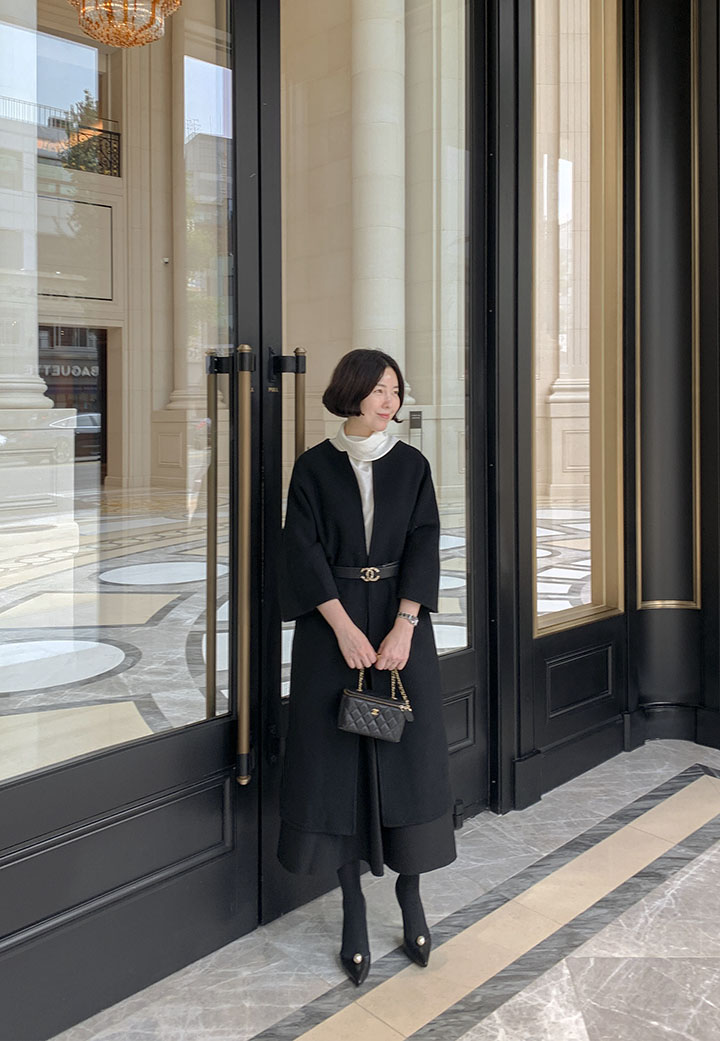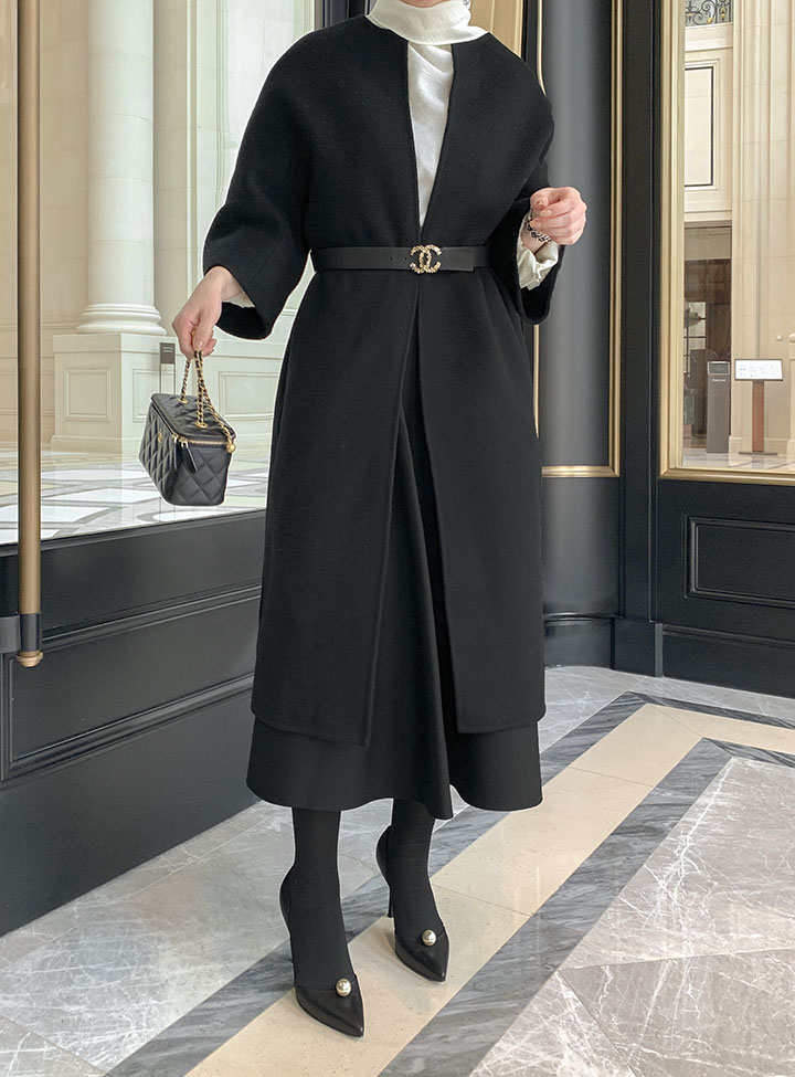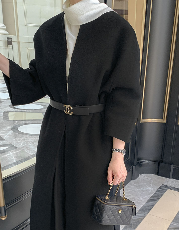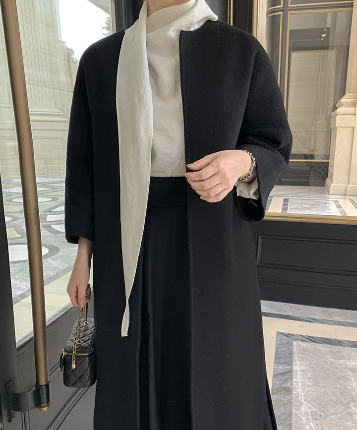 [Pre-order takes 3 weeks] Self-made, Graceful mood completed with just one coat. High-quality handmade, no-collar wool coat.