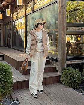 The Hooded Padded Vest gives you a cozy feeling the moment you put it on. The waist string makes for a chic outfit.