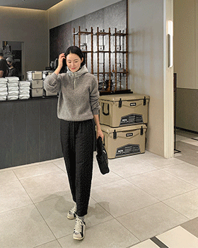 [Discount period ~ 1/8 23:59 PM] A half-zip hooded knit with a hairy texture that gives off a warm and chic vibe.