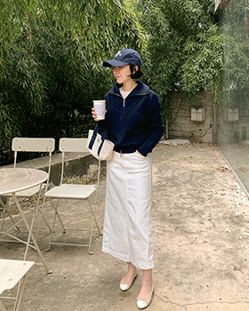 The cut line makes your legs look longer and reduces flab! Comfortable and chic for everyday wear, these wide two-button denim pants are a must-have.